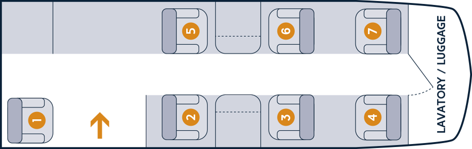 S sebou si můžete vzít všechna potřebná zavazadla. Jsme omezeni pouze maximální váhou všech pasažérů a bagáže. Pokud máte speciální požadavky na nadměrný rozměr zavazadel, prosím kontaktujte nás. V kabině je místo pro 7 cestujících s opravdu štědrým prostorem na nohy a nastavitelnými sedadly. U delších letů oceníte nejen vzdušnost prostoru a skvělé sedačky, ale také toaletu na palubě.