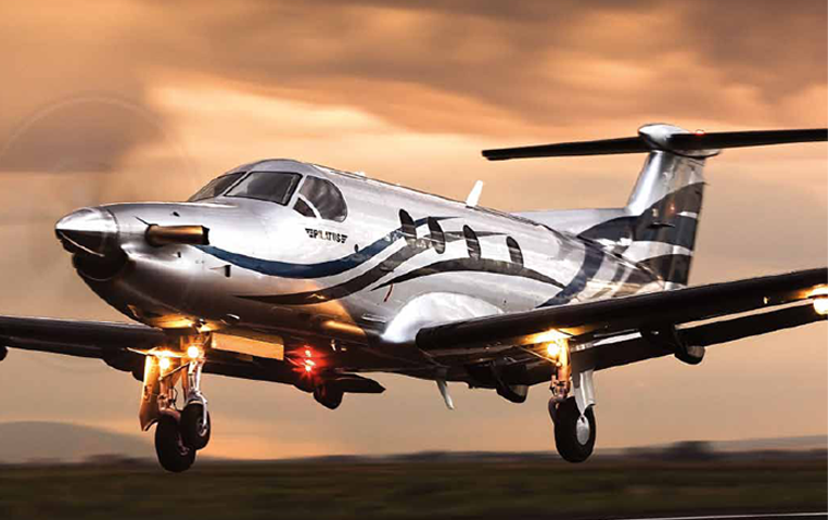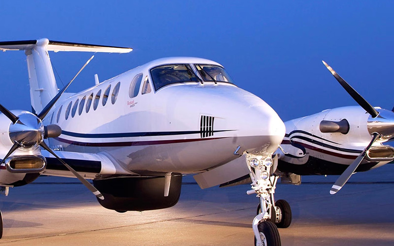 A twin-engine turboprop aircraft for comfortable travel.