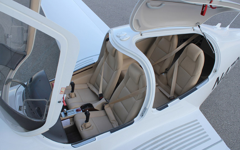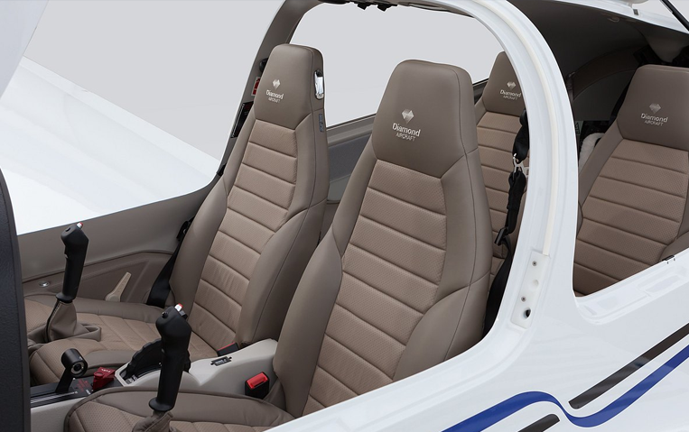 Diamond offers a very spacious and well-lit cabin that can accommodate up to 3 passengers. Luxurious ergonomically designed seats and seat belts provide maximum comfort even at the highest cruising speeds. Comfort and luxury combined with technology.
