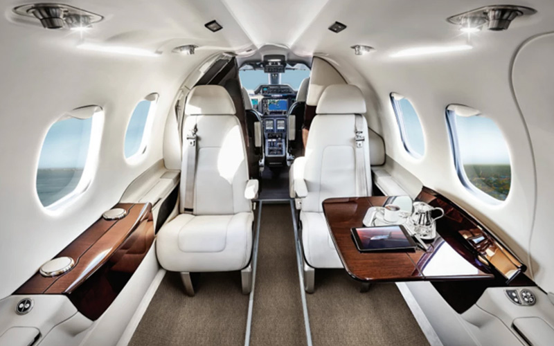 You can take all necessary luggage with you. We are only limited to the maximum weight of all passengers and luggage. If you have special requirements for oversized luggage, please contact us. The cabin has room for 5 passengers with really generous legroom and adjustable seats. For longer flights, you will appreciate not only the airy space and great seats, but also the on-board lavatory.