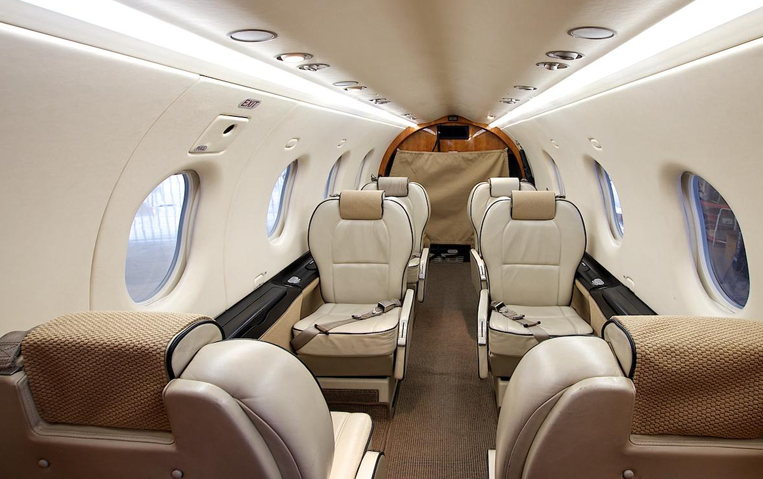 This aircraft equipped with pressurized cabin offers comfort for up to 8 passengers with luggage